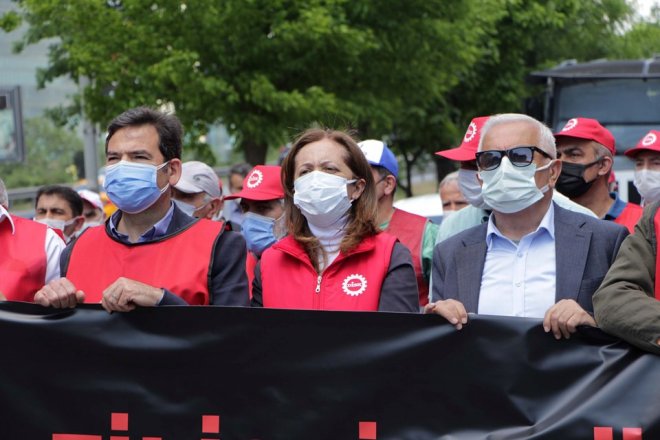 AK Parti hükümetine İsrail ile ilişkileri kesmeye çağıran Çerkezoglu, "Hükümeti ve sermaye çevrelerini İsrail ile bütün siyasi, askeri ve ticari ilişkileri kesmeye çağırıyoruz! Acilen gereğini yapın: İsrail'i boykot edin, yatırımları geri çekin, Israil'e ve yandaşlarına yaptırımlar uygulayın" dedi. Filistin halkının taleplerini savunacaklarını belirten Çerkezoğlu, "Önümüzdeki günlerde başlayacak olan ILO Uluslararası Çalışma Konferansı vesilesiyle Filistin halkının taleplerini bütün dünyaya anlatacağız. İsrail ile siyasi, askeri ve ticari bütün ilişkilerin kesilmesine yönelik mücadeleye güç vereceğiz! İşgalcilerden hesap soracağız. Filistin'i özgürleştireceğiz. Kahrolsun işgalciler! Kahrolsun emperyalizm! Yaşasın Özgür Filistin!" dedi.