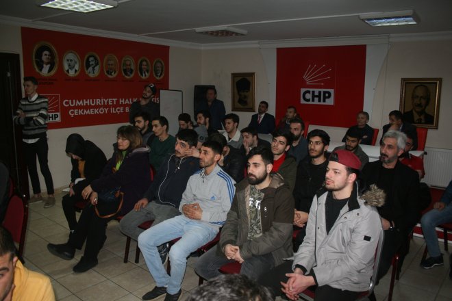 CHP Çekmeköy Belediye Başkan Adayı Seyfettin Yıldırım 31 Mart yerel seçimleri öncesi çalışmalarını tüm hızıyla sürdürürken gençlerde kendisini yalnız bırakmıyor. CHP Çekmeköy Meclis üyesi adayı 27 yaşında Cambridge Uluslararası İş Yönetimi ve İşletme mezunu Can Uygun siyasette gelecek vaat eden bir genç olarak Seyfettin Yıldırım'ın yanında yer alıyor. Can Uygun'un Başkan yardımcılığını yaptığı Çekmeköy Gençlik Platformu üyeleride kendisini CHP Çekmeköy ilçe nöbeti sırasında yalnız bırakmadılar. Çekmeköy Gençlik Platformu Başkanı Cüneyt Gemici ve üyelerinin ziyaretine CHP Çekmeköy Belediye Başkan Adayı Seyfettin Yıldırım, CHP Çekmeköy Belediye Meclis üyesi Ali Abbas Coşkun, CHP Çekmeköy Belediye Meclis üyesi adayı Ünal Bellek katılarak destek verdiler ve selamlama konuşması yaptılar. Can Uygun yaptığı konuşmada "Çekmeköy Gençlik Platformunda birlkte yol yürüdüğümüz arkadaşlarımın bu ziyareti beni çok memnun etti ve duygulandırdı. Herkese teşekkür ediyorum" dedi.