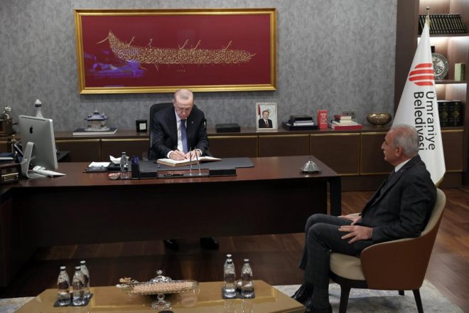 Ümraniye Belediye Başkanı İsmet Yıldırım ve belediye yönetimi tarafından karşılanan Cumhurbaşkanı Erdoğan, yaklaşık iki saat süren ziyarette Ümraniye Belediyesi anı defterini de imzaladı.